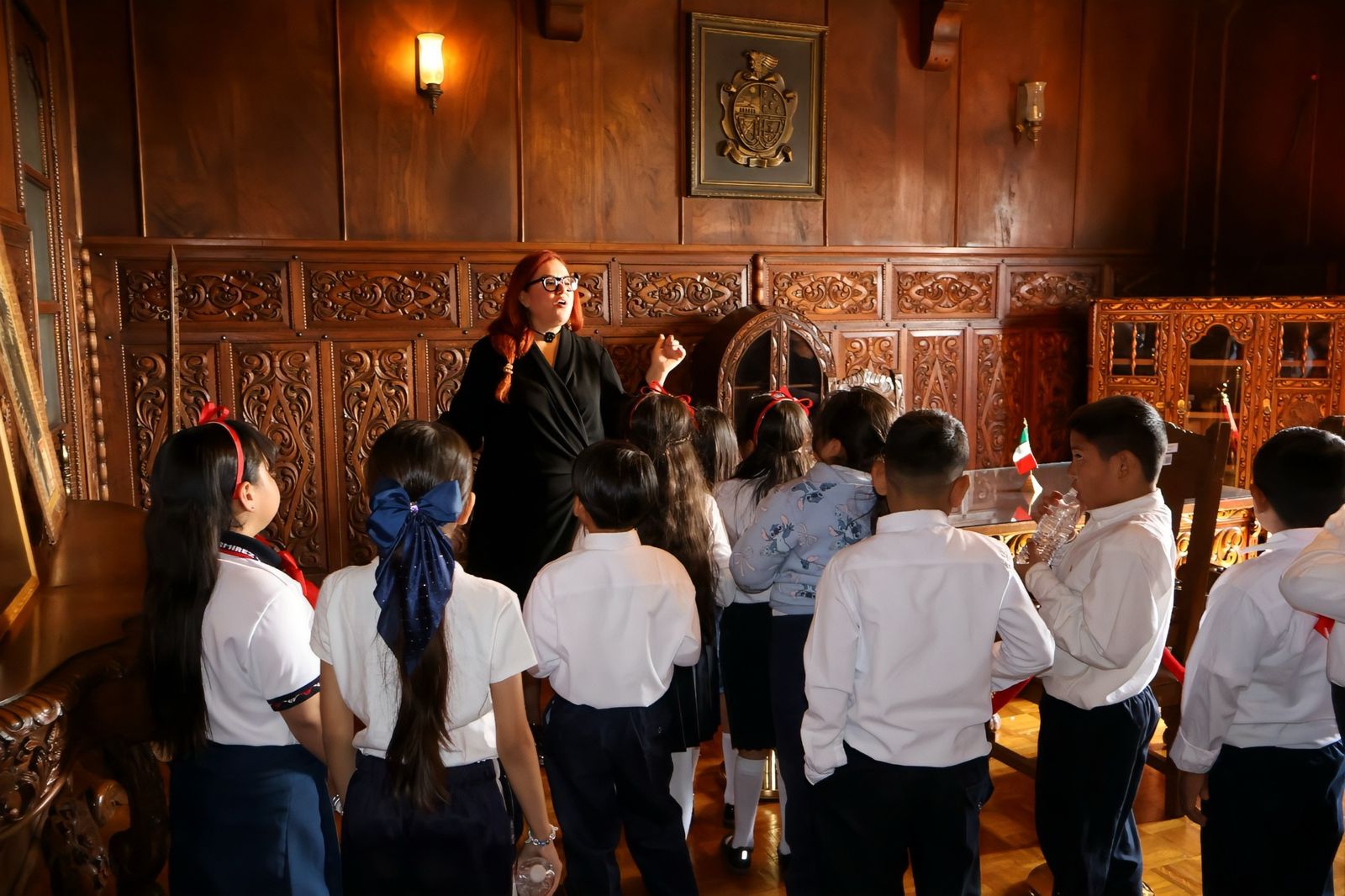 En estos espacios, Olivas compartió con el grupo algunos pasajes relacionados con la historia del lugar y el origen de los muebles que forman parte del recinto, al tiempo que respondió a las preguntas de los estudiantes, quienes mostraron interés por los detalles del edificio y las funciones que ahí se realizaban.