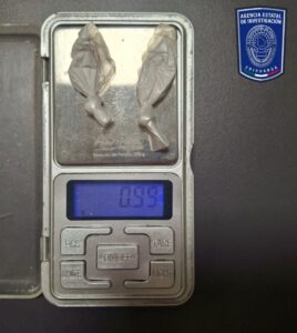 El arresto ocurrió en el cruce de las calles Ochoa y 10 de Mayo, en la colonia La Esperanza, cuando los agentes realizaron una revisión corporal al menor y localizaron entre sus pertenencias dos envoltorios de plástico con una sustancia blanca con características similares a la cocaína, con un peso aproximado de 0.99 gramos.