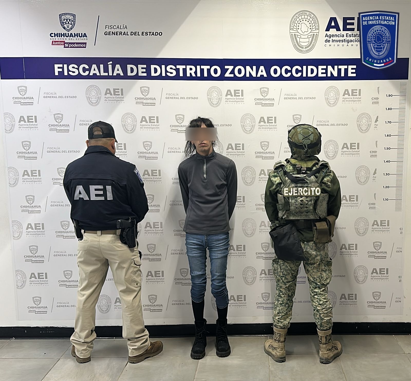 Elementos de la Agencia Estatal de Investigación (AEI), en coordinación con el Ejército Mexicano, detuvieron a dos hombres por delitos contra la salud durante acciones de prevención y vigilancia realizadas en los municipios de Madera y Cuauhtémoc.