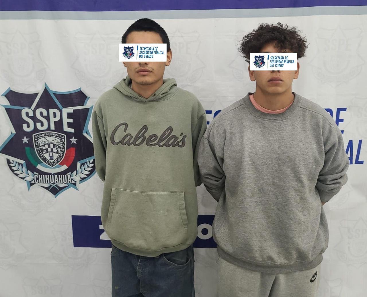 Durante la intervención, fueron detenidos Víctor Javier M.L, de 24 años de edad, y David Alexis S.M, de 19 años, ambos originarios de Ciudad Juárez, a quienes se les aseguraron 210 envoltorios de marihuana con un peso aproximado de 2.907 kilogramos.